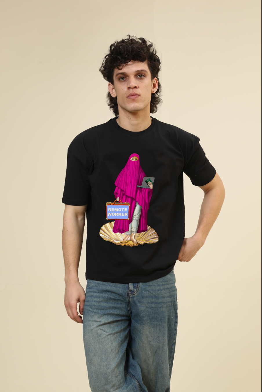 Male model height 6'3, wearing size Medium