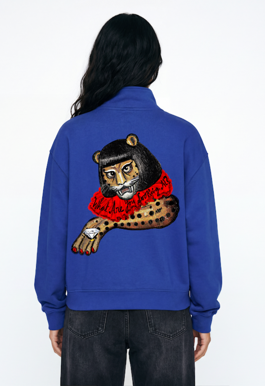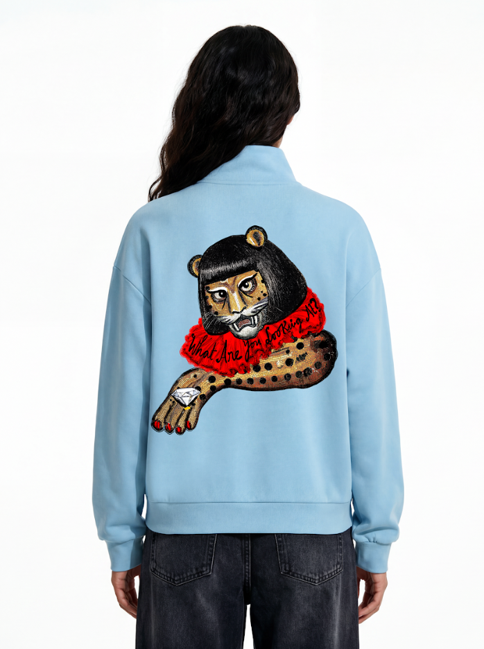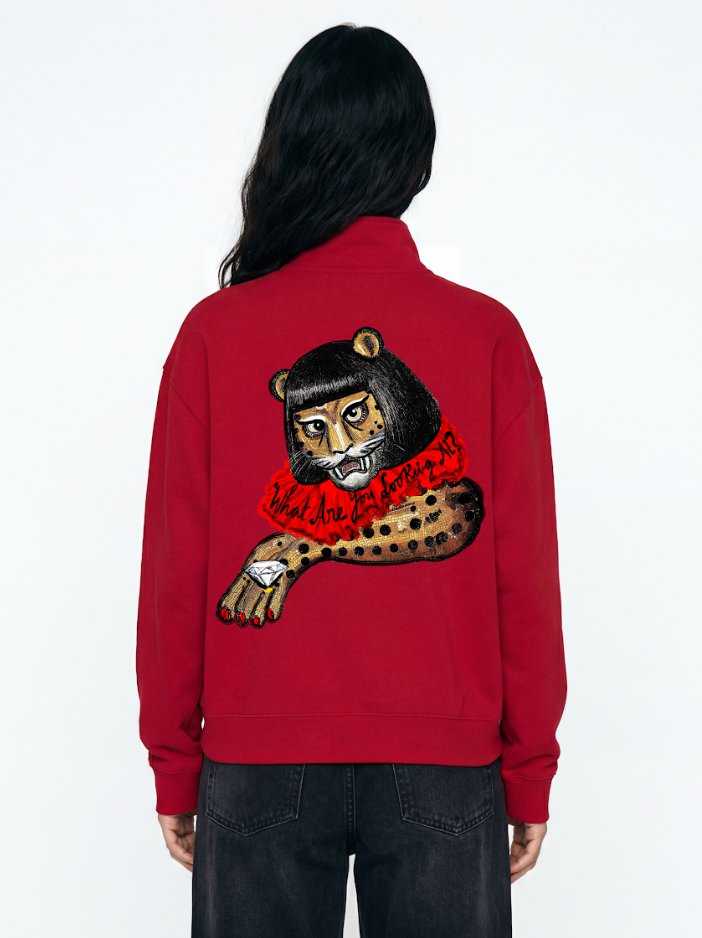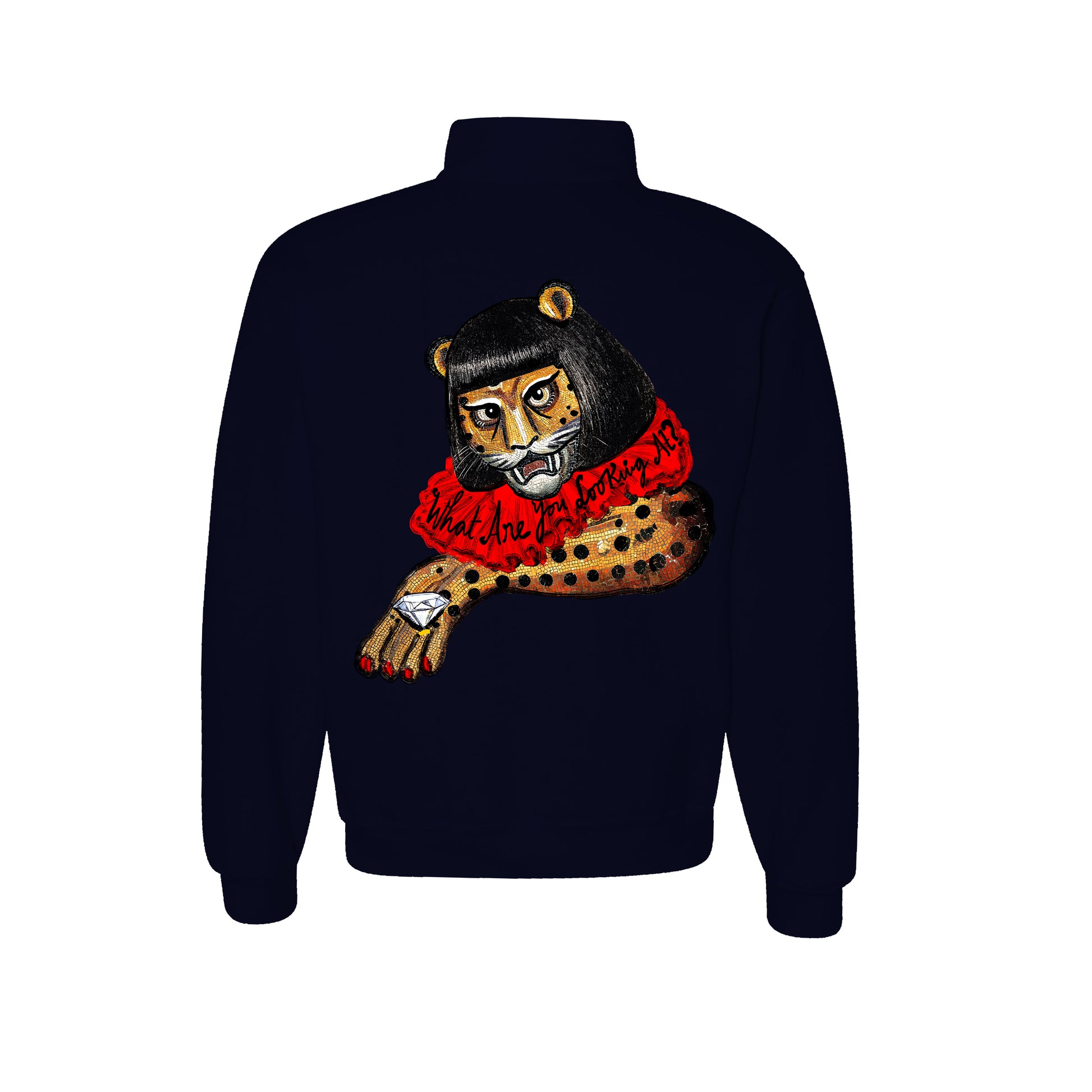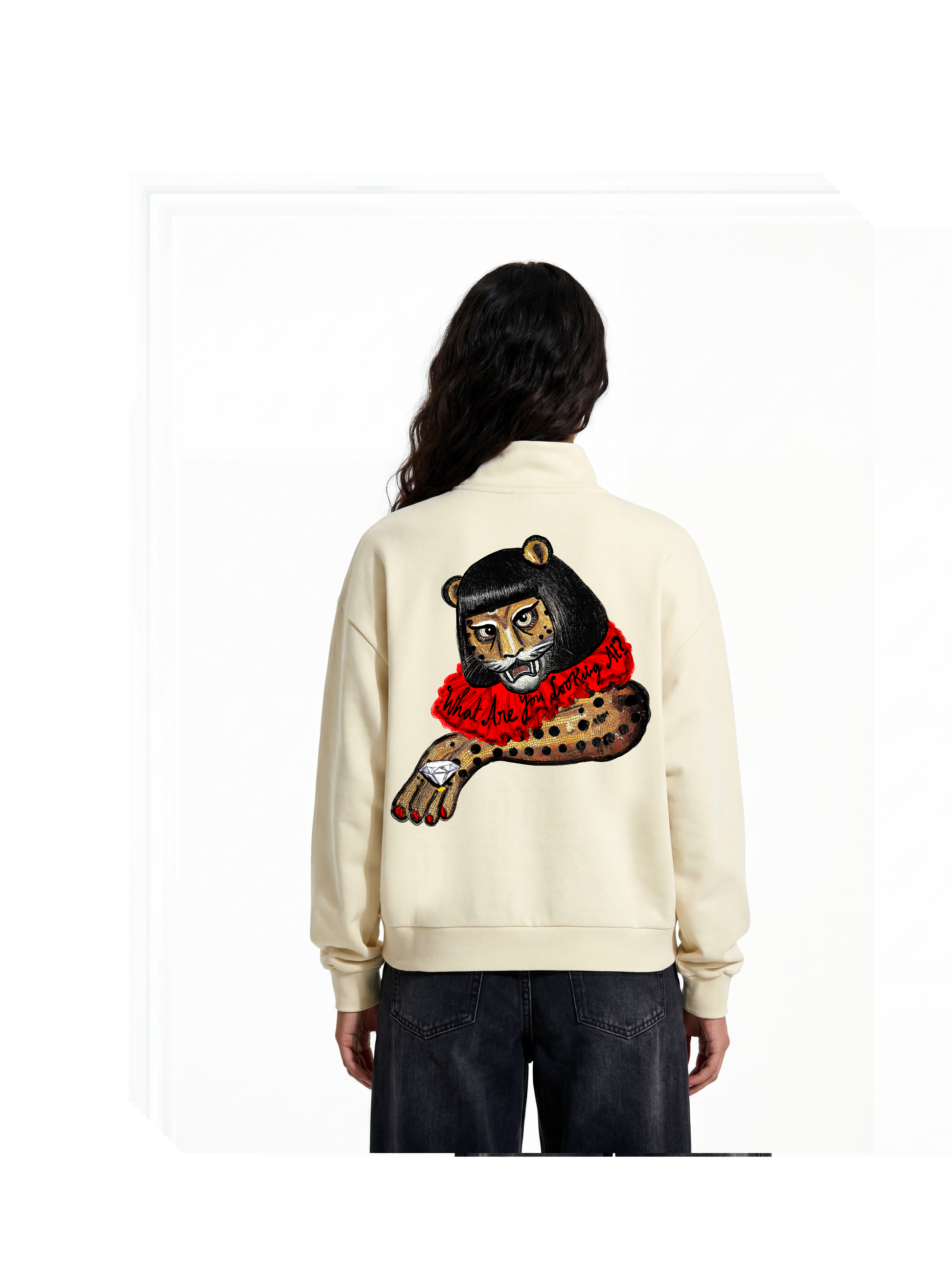 This quarter sweatshirt features graphic artwork on both the front and back.